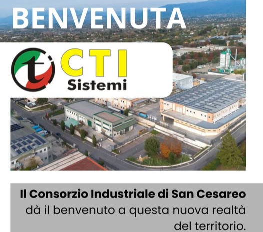 Da oggi facciamo parte della realtà industriale dei San Cesareo: "Il Consorzio Industriale di San Cesareo dà il benvenuto alla CTI Sistemi - Impianti Tecnologici Industriali.